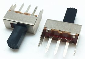 拨码开关的工作原理:为长条形,一般为六个焊接点、双刀双掷、中间两个焊接点为输入端、外部四个焊接点为输出端;包含两套独立的单刀双掷、两套同步运动的开关。 推键时,先压一端上部的一个或者几个键,再推另一端压住对应部位的另外一个键,最后再一次拉动两头。 本实用新型通过改变拨动方式可以控制不同键位的切换,以达到调节音量大小和音色变化的目的。