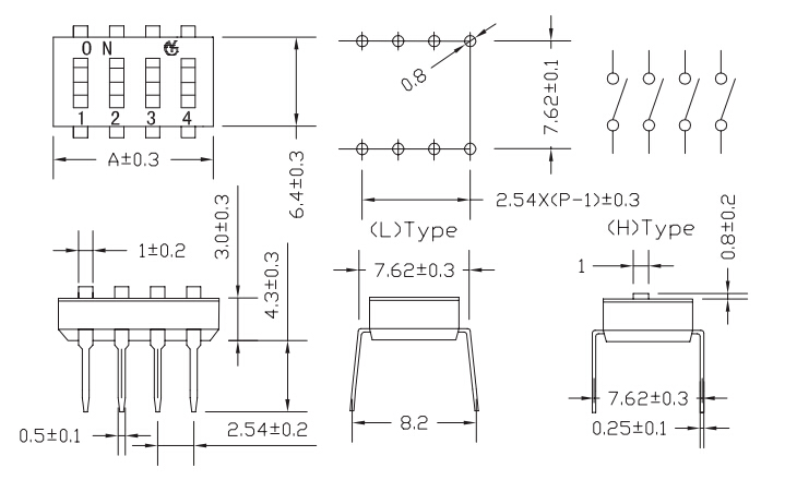拨码开关包装方式:所有开关推钮在包装时都设置在" OFF“的位置。