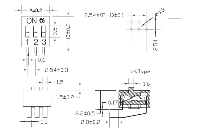 拨码开关包装方式:所有开关推钮在包装时都设置在" OFF“的位置。