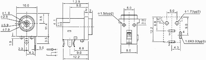 接触电阻 Contact Resistance ≤0.03Ω 寿命 Life 5000次