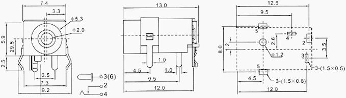 接触电阻 Contact Resistance ≤0.03Ω 寿命 Life 5000次