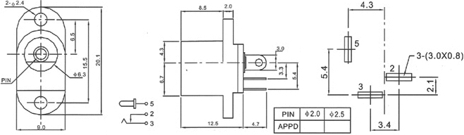 额定负荷 Rated Load DC 30V 0.5A 插拔力 Actuating Force 3~20N