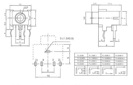 接触电阻 Contact Resistance ≤0.03Ω 寿命 Life 5000次