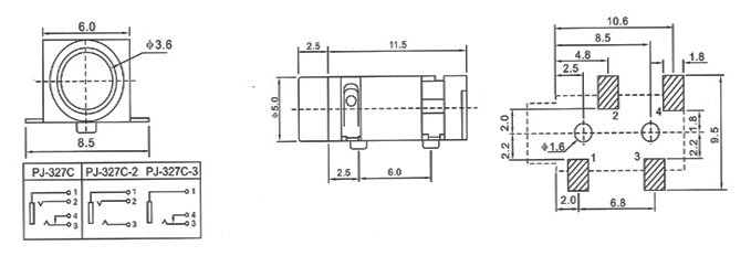 接触电阻 Contact Resistance ≤0.03Ω 寿命 Life 5000次