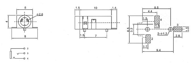 额定负荷 Rated Load DC 30V 0.5A 动作力 Actuating Force 3~20N